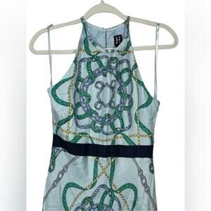 Tommy Hilfiger Collection Nautical Silk Halter Dress Sz 6 | Blue Green Midi Keyhole