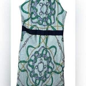 The eye-catching blue, green, and yellow geometric nautical print brings a pop of color to any occasion — perfect for vacations, summer parties, or seaside weddings. Though the material tag is missing, this dress is guaranteed authentic and comes from a smoke-free home.