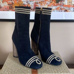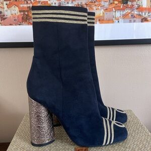 Tommy Hilfiger Collection - Navy Suede Boots with Gold Embellishments