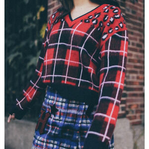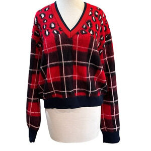 Tommy Hilfiger Collection X SAKS 5TH AVENUE Mohair Blend Tartan Leopard Print Sweater Red, Blue White Black
