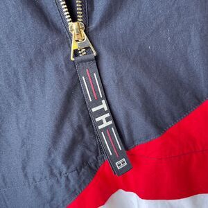 Tommy Hilfiger Colorblock Hooded 1/2 Zip Pullover 85 Logo Men’s M Retro Sail