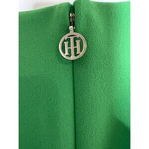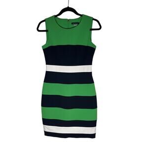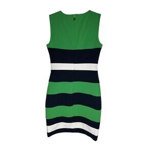 Tommy Hilfiger Colorblock Scuba Crepe Sheath Dress. Back Zip Closure. Green, Navy, and White Colorblock.