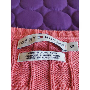 Tommy Hilfiger Womens Pullover Sweater Pink Long Sleeve V Neck Cable Knit S