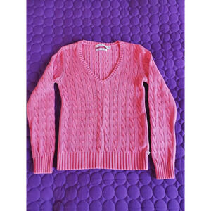 Tommy Hilfiger Coral Long Sleeve V Neck Pullover Sweater Cable Knit SP