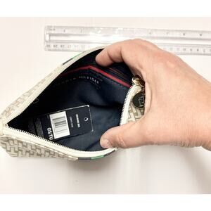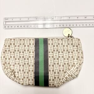 Tommy Hilfiger Cosmetic Case Beige Signature TH Pattern 2011 Travel Beauty 9x5