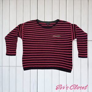 Tommy Hilfiger Cotton Boat Neck Pullover Sweater Women's XL Pink Blue Stripes