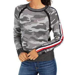 Like New Tommy Hilfiger Camo Jacquard Sweater. Worn maybe once or twice. Iconic Tommy Hilfiger stripe down the right side arm only. well made, just not my size.