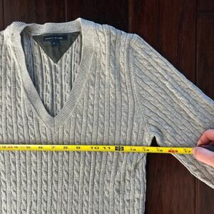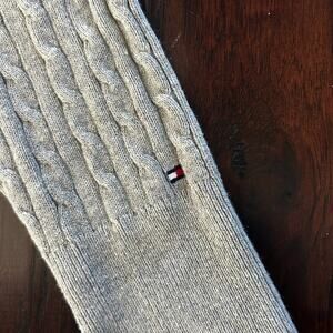 Tommy Hilfiger Cotton + Cashmere grey V neck sweater Cable knit Light Academia