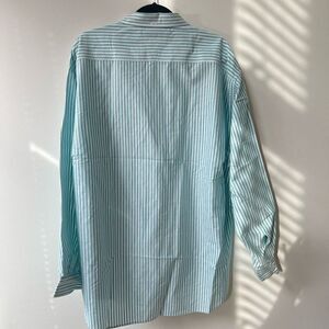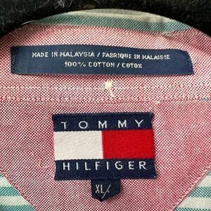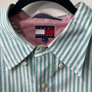 Tommy Hilfiger Cotton Oversized Button Down Long Sleeve Green Striped Mens Shirt Size Extra Large