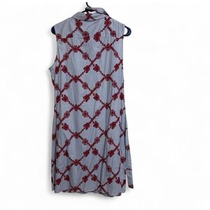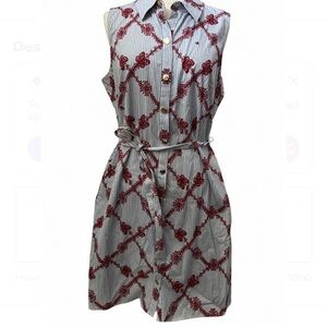 Elevate your wardrobe with this chic Tommy Hilfiger women’s sleeveless shirt dress in size 14. Crafted from 100% cotton, it features a classic blue-and-white striped pattern adorned with bold red floral embroidery, creating a timeless yet modern look.