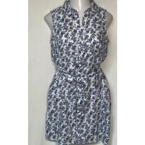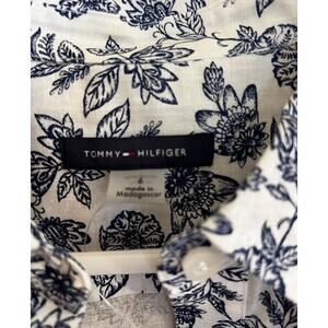 Tommy Hilfiger Cotton/linen Sleeveless Summer Shirt Dress In B&W Floral Print 6
