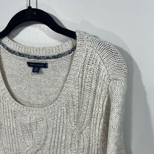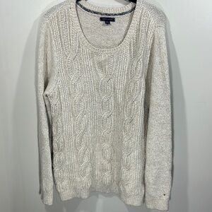 Tommy Hilfiger Cream Classic Fisherman Cable Knit Crew Neck Sweater size XL