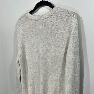 This cream sweater features a classic cable knit pattern and a comfortable crew neck design. Its long sleeves and relaxed fit make it perfect for cozy layering during cooler months.