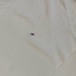 Tommy Hilfiger sweater, men’s XXL pullover, cotton crewneck sweater, embroidered flag logo, cream knit sweater, ivory pullover sweatshirt, neutral fall sweater, men’s preppy sweater, classic Hilfiger top, vintage Tommy Hilfiger, men’s casual knitwear, oversized crewneck sweater, business casual sweater, winter layering pullover, men’s smart casual outfit, minimalist men’s sweater, relaxed fit cotton sweater, 90s style Tommy Hilfiger, men’s logo knit pullover