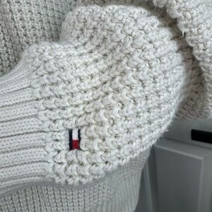 Embrace warmth and style with this Tommy Hilfiger sweater, featuring a cozy cowl neck and a classic cream hue. The thick knit design ensures comfort during chilly days, while the relaxed fit offers a timeless appeal.