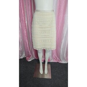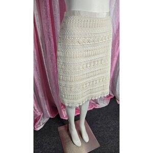 Tommy Hilfiger Cream Crochet Lined Pencil Skirt Size 10