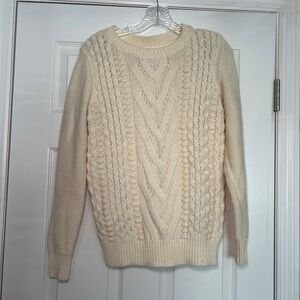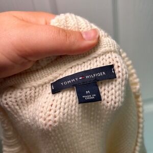 Tommy Hilfiger Cream Sweater Women's Medium Chunky Cable Knit Fisherman Grandma