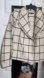 Stylish cream blazer with black grid pattern. Modern design with sleek lines.