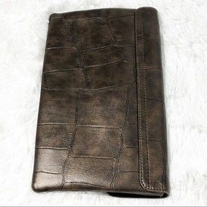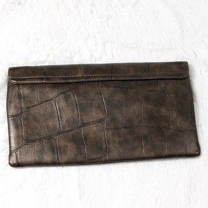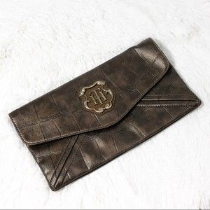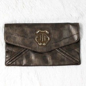 Tommy Hilfiger Crocodile-Embossed Envelope Clutch in excellent condition. Color is a brown with hint of bronze.