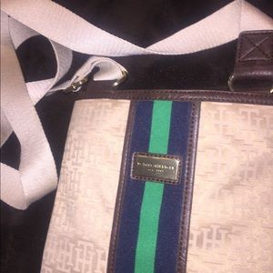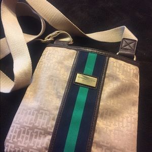 New, never used Tommy Hilfiger. Color Tan with Gold Hardware and Blue&Green designs.
