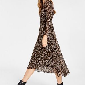 Tommy Hilfiger Crossover-Hem Black and Tan Floral Midi Dress Size 16 /XL NWT