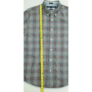 Tommy Hilfiger Custom Fit Melange Size Medium Mens Gray Red Blue Check Cuff Logo