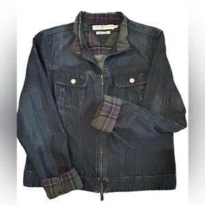 Tommy Hilfiger Dark Blue Jean Jacket with Plaid Accents