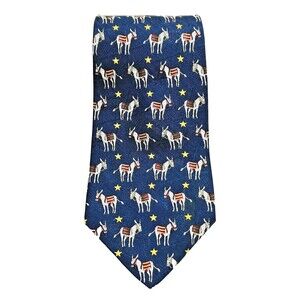 Tommy Hilfiger Democrat Donkey Necktie 100% Italian Silk Tie Election Stars Navy