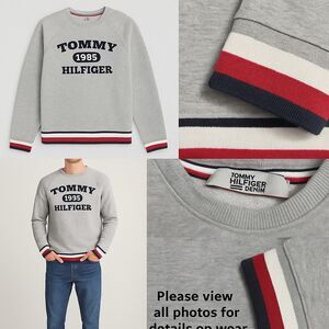 Tommy Hilfiger Denim 1985 Crewneck Sweatshirt Gray Size S/M Logo Pullover USA