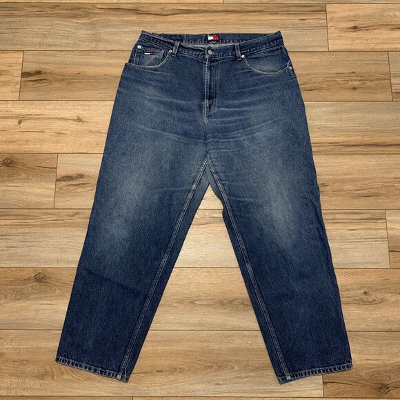 Tommy Hilfiger Denim Blue Jeans 40 x 32 Baggy Flag 90s Retro Y2K Vintage VTG