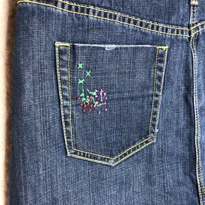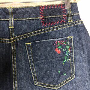 Tommy Hilfiger Denim Button Skirt with Floral Embroidery Size 6