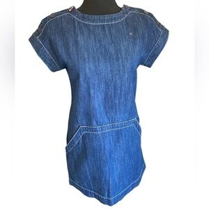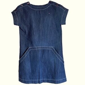 Tommy Hilfiger Denim Dress Girls Size 14 Blue Denim Kangaroo Front P…Barbicore