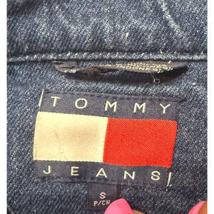 This Tommy Hilfiger Denim Jean Jacket Coat is a rare find for men looking for a very COMFY oversized and lined nautical-themed piece. Made from cotton denim with a vintage feel, this mid-length jacket features a button closure, collared neckline, and multiple pockets for functionality. The jacket is accentuated with embroidered logos and a solid blue color, perfect for casual occasions in all seasons. With a relaxed fit and size small that can comfortably fit M/L, this Tommy Hilfiger Tommy Jeans product is a stylish and practical addition to any wardrobe. I have never seen one like it.