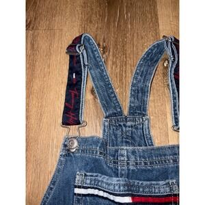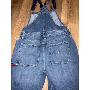Keywords: Tommy Hilfiger overalls, denim overalls women, blue denim overalls, frayed hem overalls, adjustable strap overalls, casual overalls, women's overalls, denim jumpsuit, Tommy Hilfiger jeans, medium wash denim, classic overalls, vintage overalls