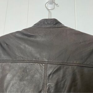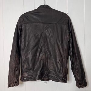 Tommy Hilfiger Distressed Brown Leather Moto Jacket Fitted Zip Front Men's 42