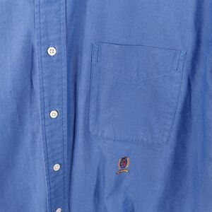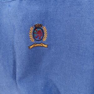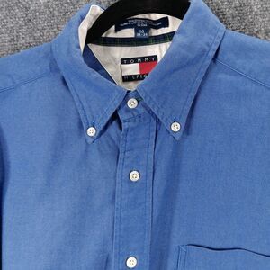 Tommy Hilfiger Dress Shirt Mens 16 Blue Cotton Pleated Chambray Embroidered Logo