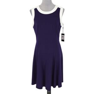 Tommy Hilfiger Dress Women's 10 Navy Blue White Trim Sleeveless Back Zip Resort Career New