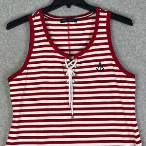 Tommy Hilfiger Dress Women's L Red White Stripe Nautical Maxi Lace Up Sleeveless
