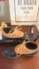 Stylish tan and navy duck boots with lace-up design. Perfect for rainy days.