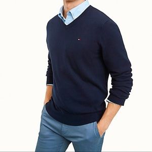 Tommy Hilfiger men's sweater. Made from premium cotton in an easy fit, our V-neck sweater is a soft, comfortable layer.