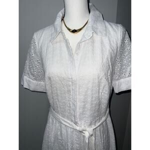 Tommy Hilfiger Elegant White Midi Dress Size 10 – Lined, Pockets, Button Down