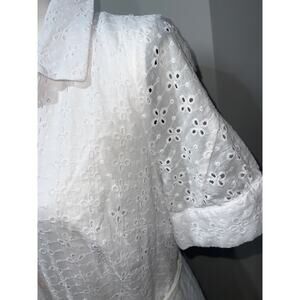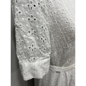 Tommy Hilfiger elegant white midi dress in excellent condition. Made of 100% cotton and fully lined for a smooth, comfortable fit. It features short sleeves, a full button-down front, and practical side pockets — a charming detail that adds style and functionality. Perfect for white parties, summer events, or casual elegant occasions. Smoke-free and pet-free home. No stains or flaws.