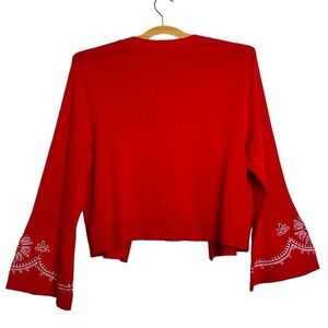 Tommy Hilfiger Embroidered Crop Cardigan Bell Sleeve Red Large