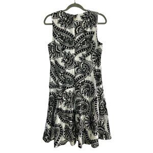 Tommy Hilfiger Embroidered Fit & Flare Midi Dress 10 | Black White A-Line Lined