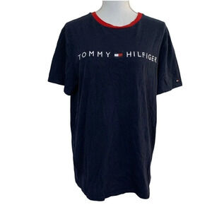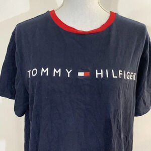 Tommy Hilfiger Embroidered Navy Ringer Short Sleeve Red Trim White Logo Medium.