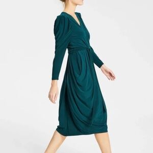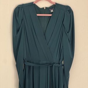 Tommy Hilfiger Emerald Green Faux Wrap Puff Sleeve Dress Size 10