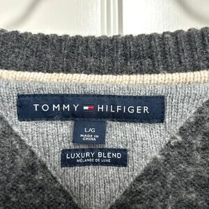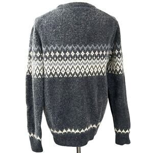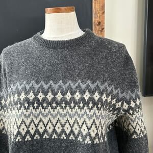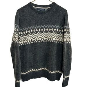 Tommy Hilfiger Fair Isle Nordic Sweater L Gray White Knit Cottage Cozy Crew