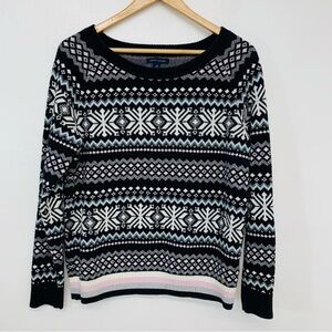 Tommy Hilfiger Fair Isle Sweater Woman Large Cotton Wool Long Sleeve Snowflakes