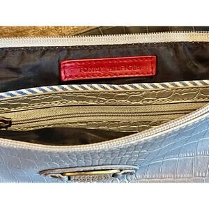 Tommy Hilfiger Faux Croc Leather Shoulder Purse Bag Metallic Silver Embossed