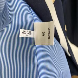Tommy Hilfiger Faux Double Breasted Navy Nautical Blazer. Size 6. This is a very deep navy color with white accents and gold buttons that have embossed anchors. It has a single hook and eye closure and functional front pockets.